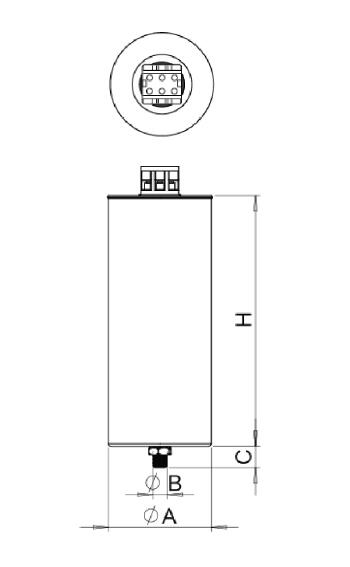 | 產(chǎn)品型號(hào) Type | 額定容量 Cap. (400v) (kvar) | 額定容量 Cap. (kvar) | 額定電流 Rated current (A) | 額定電容 Rated capacity (μF) | 尺寸 Dimensions ( AXH-BXC ) |